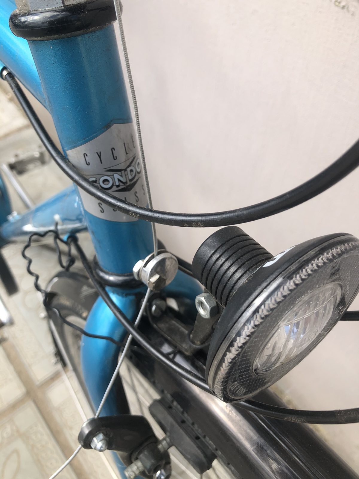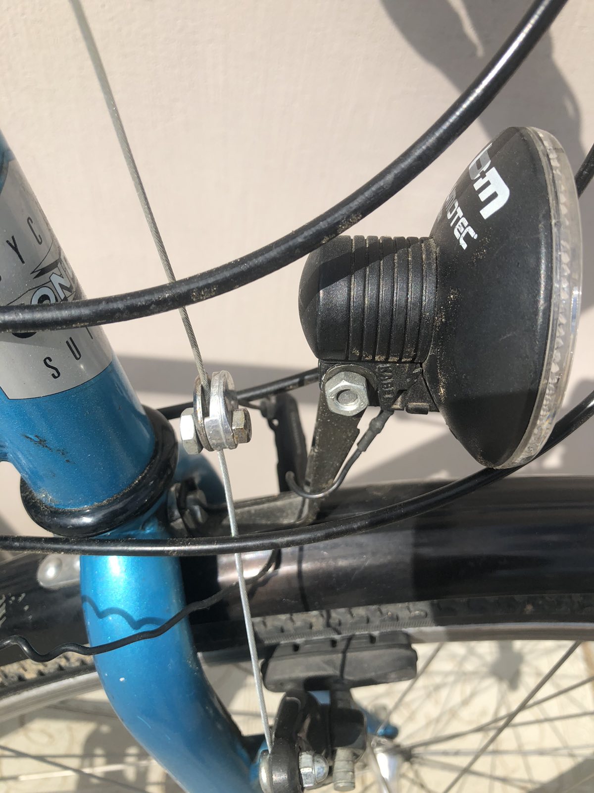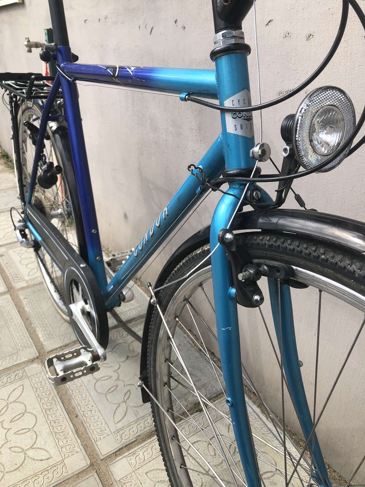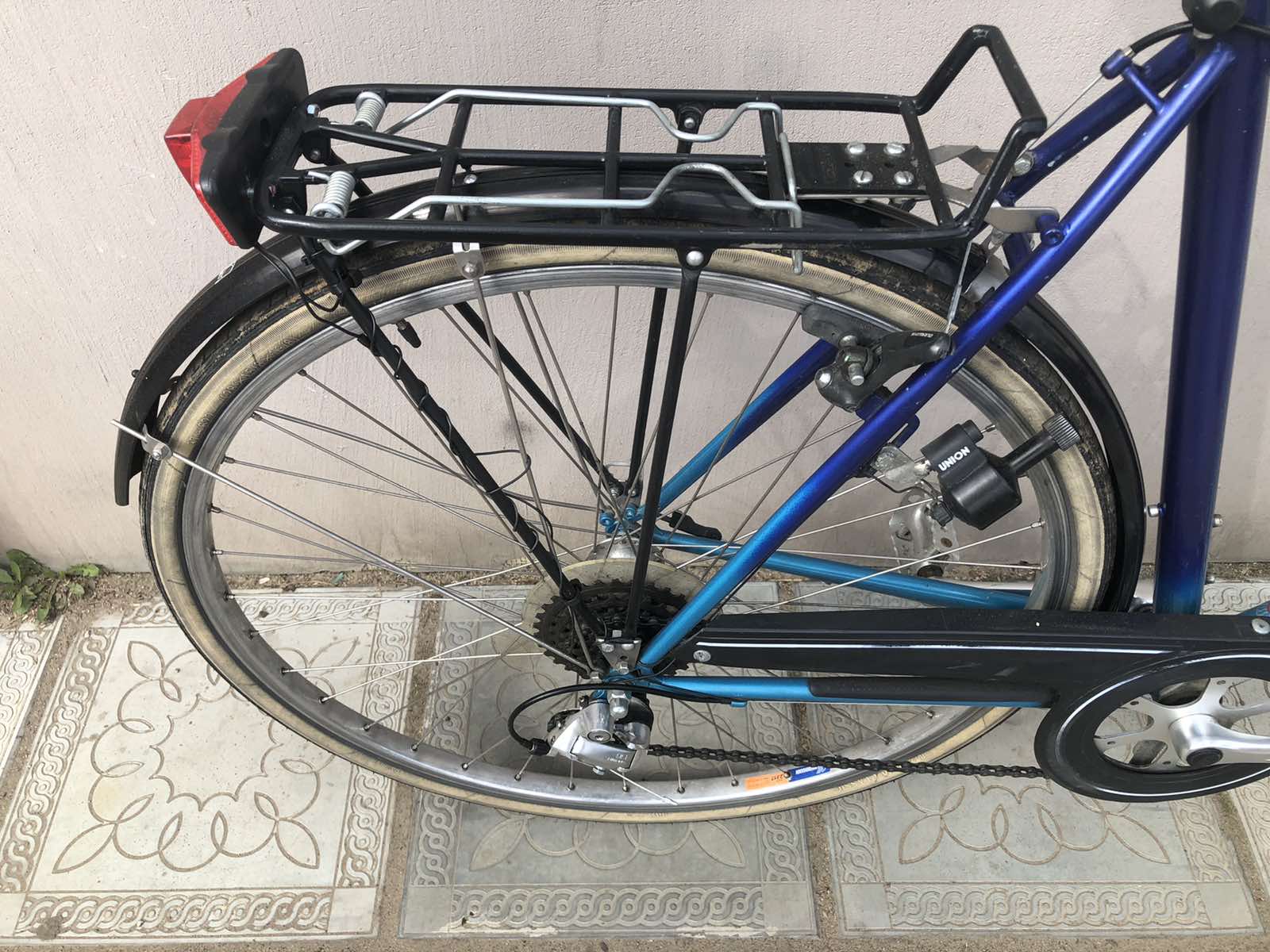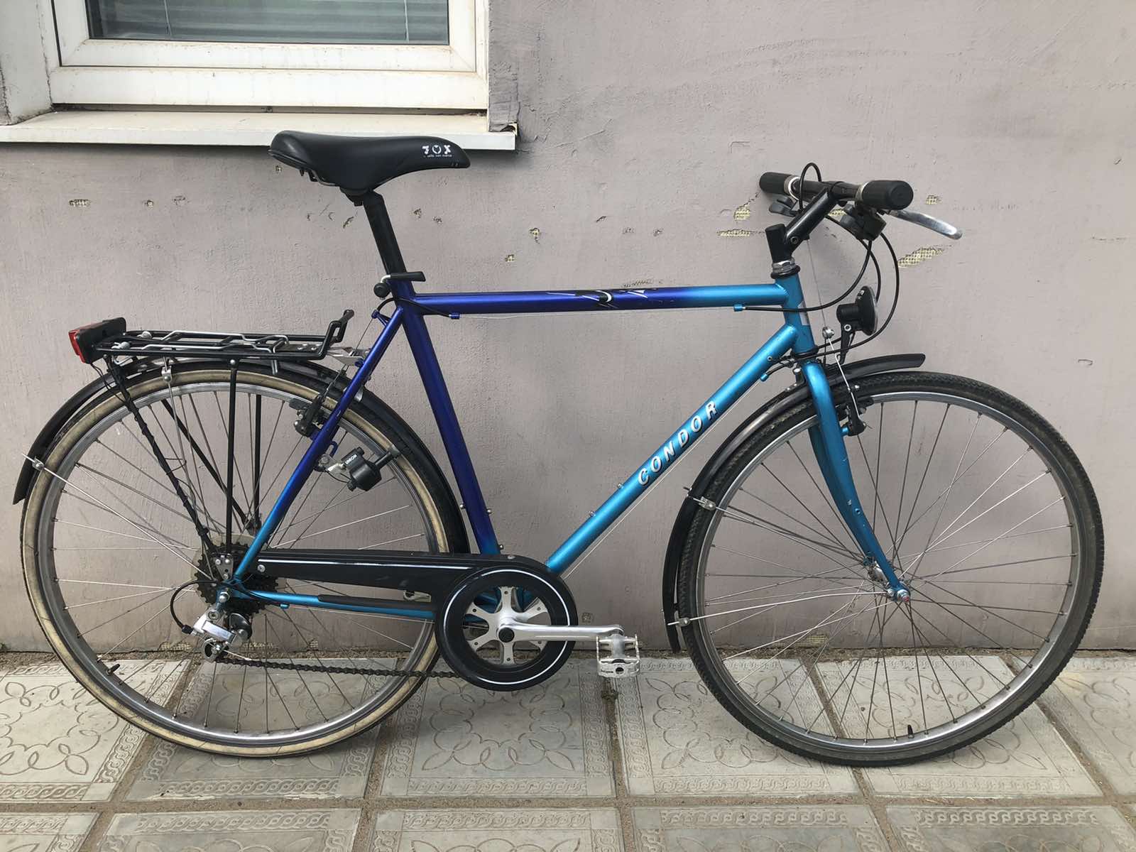 Классический турниковый велосипед на стальной раме в хорошем техническом состоянии и эстетическом состоянии. Установленные компоненты не китайские, очень надежные. Велосипед имеет не высокую массу невзирая на установленное дополнительно оборудование. Щитки выполнены из пластика. Все оборудование исправно, особенностью является использование заднего классического переключателя совместно и с трансмиссией планетарного типа. Из недостатков: в скором времени потребуется замена покрышек колес, т.к. стоят еще родные, износ связан в большей степени с возрастом резины.