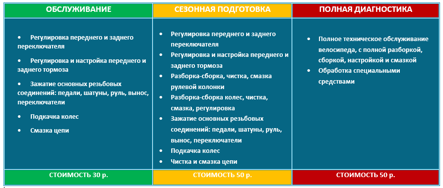 Ремонт или укорачивание цепи (без стоимости новых звеньев).